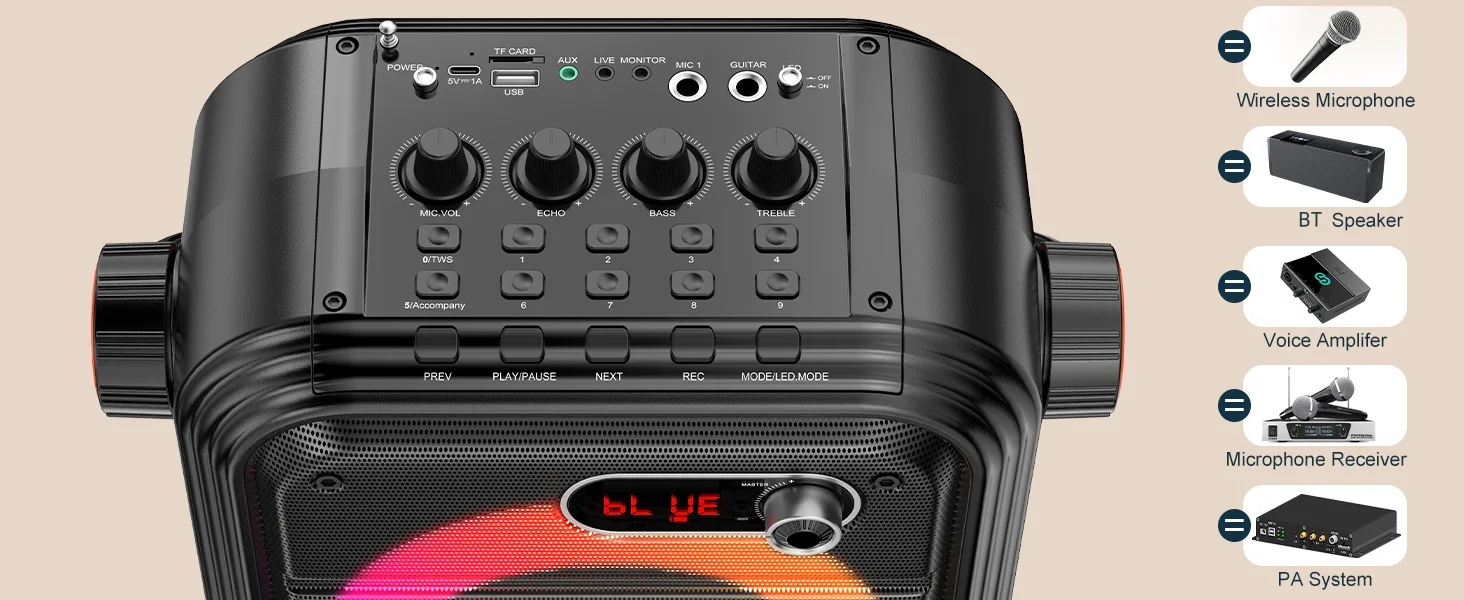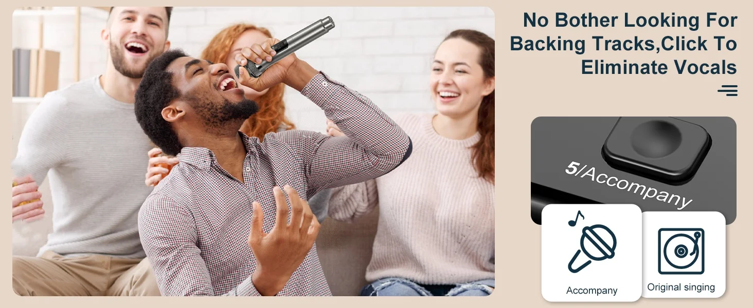 Wireless anti-feedback microphones, crystal clear audio: Equipped with wireless 2.4G Bluetooth microphones with APTX HD decoding, enjoy studio quality sound transmission without latency. Advanced noise reduction eliminates interference of more than 95%, ensuring crystal clear voice reproduction during karaoke or live interactions. Sing like a pro, free of echoes or distortions.