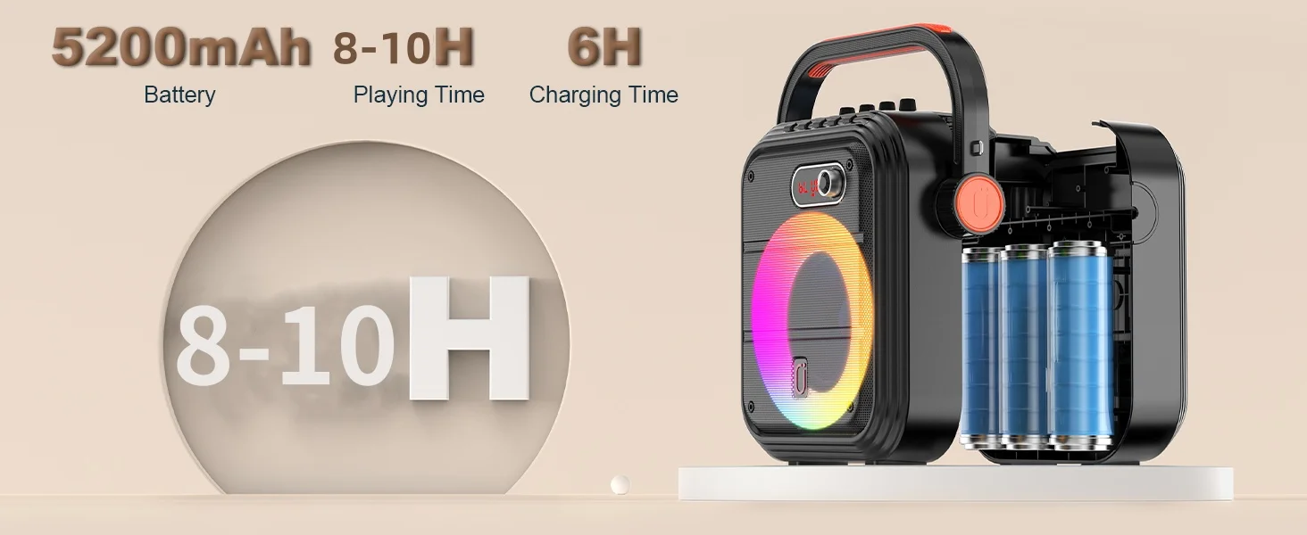 Marathon playback, versatile connection options: a 4500 mAh battery provides more than 12 hours of music enjoyment at maximum volume and can be recharged within 2 hours (while charging). Seamless switching between Bluetooth, USB/TF cards, AUX inputs and more - user-friendly for all ages, ready for any situation.